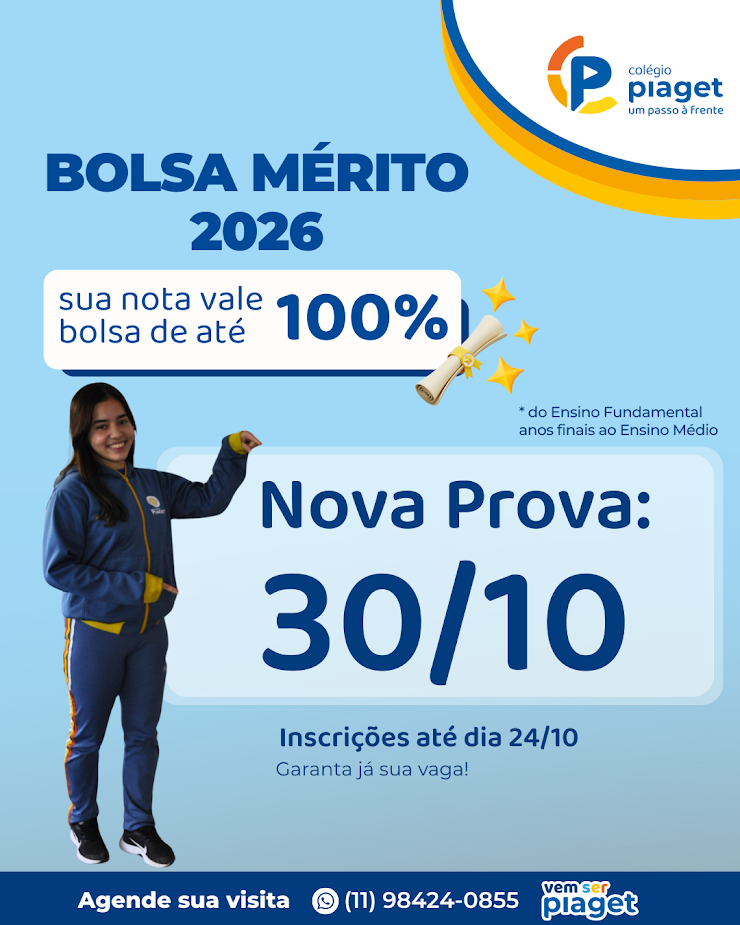 Temos programa de bolsa a partir do 6º ano do Ensino Fundamental II, com descontos de até 100% com base no desempenho acadêmico do aluno.